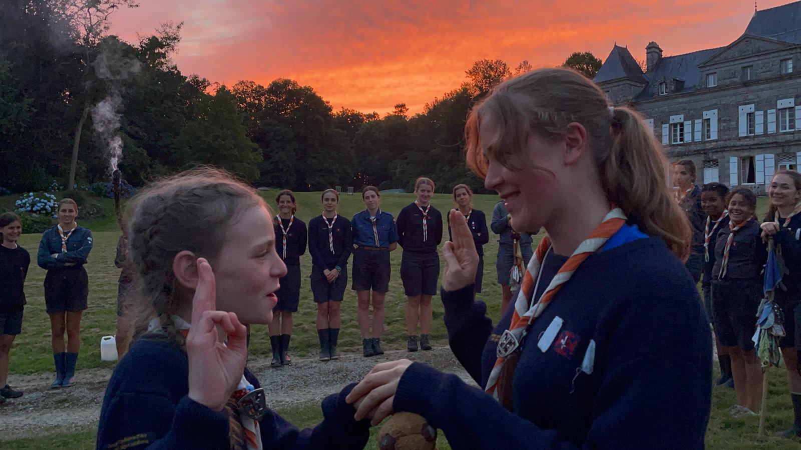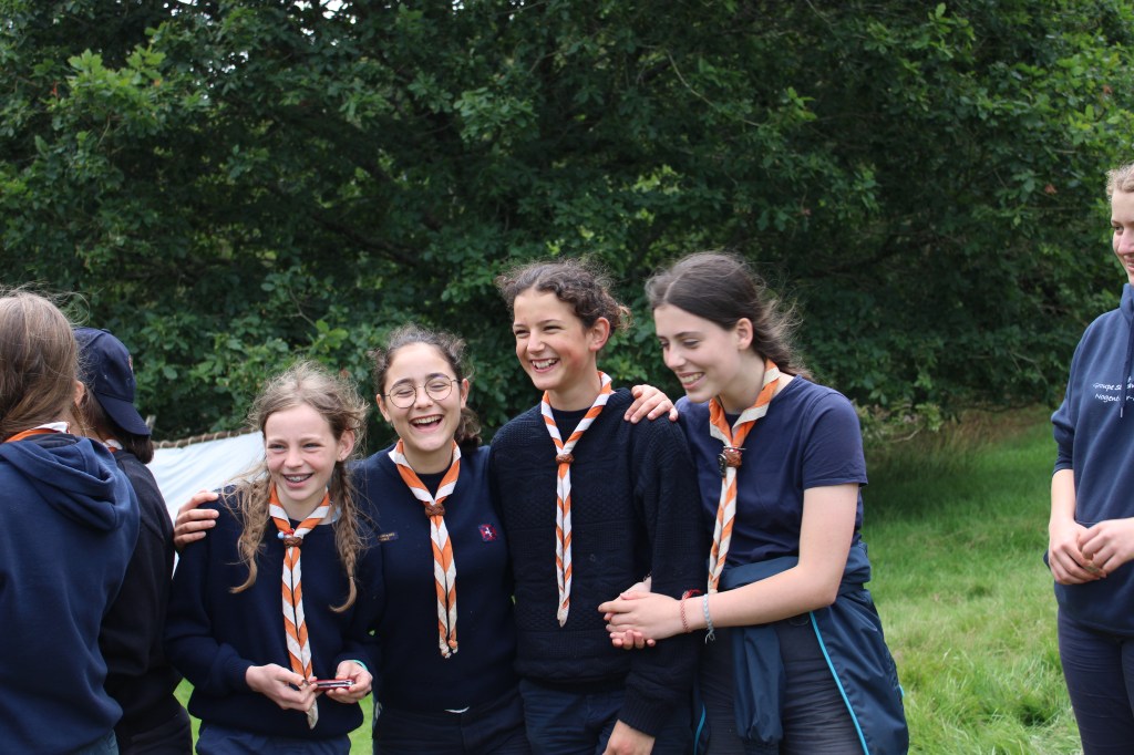 Le génie de la méthode scoute est de réunir dans la même équipe des filles de 12 à 17 ans. Les aînées sont amenées à dépasser les difficultés de leur âge pour s’occuper des plus jeunes. Elles sont poussées à la qualité, à l’exigence vis à vis d’elles-mêmes parce que les plus jeunes les regardent comme des grandes pleins de savoir, de compétence et de maturité. Quant aux plus jeunes, elles sont appelées à grandir par l’exemple de ces grandes sœurs qui les initient petit à petit à l’art de devenir des femmes debout.